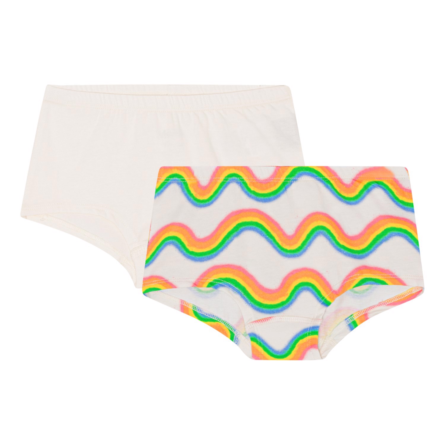 2er-Pack Hipster-Slips aus weicher Öko-Baumwolle. Der Slip hat einen breiten Rand und einen Gummizug in der Taille, der für eine gute Passform und einen guten Sitz sorgt. Die Höschen sind in zwei verschiedenen Farben erhältlich, ein Paar in Weiß und das andere mit einem Aufdruck von Molos Regenbogen. Kombinieren Sie das 2er-Pack Unterhemden im gleichen Material und in der gleichen Farbe.