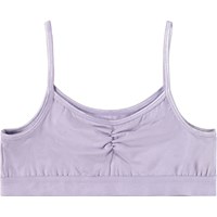 Lila Unterwäsche aus weichem und dehnbarem Viskosestoff. Das Oberteil hat schmale elastische Träger und eine geraffte Naht vorne, die dem Oberteil einen schönen Schnitt verleiht. Das Oberteil und der Slip haben einen breiten elastischen Bund für eine gute Passform und angenehmen Tragekomfort.