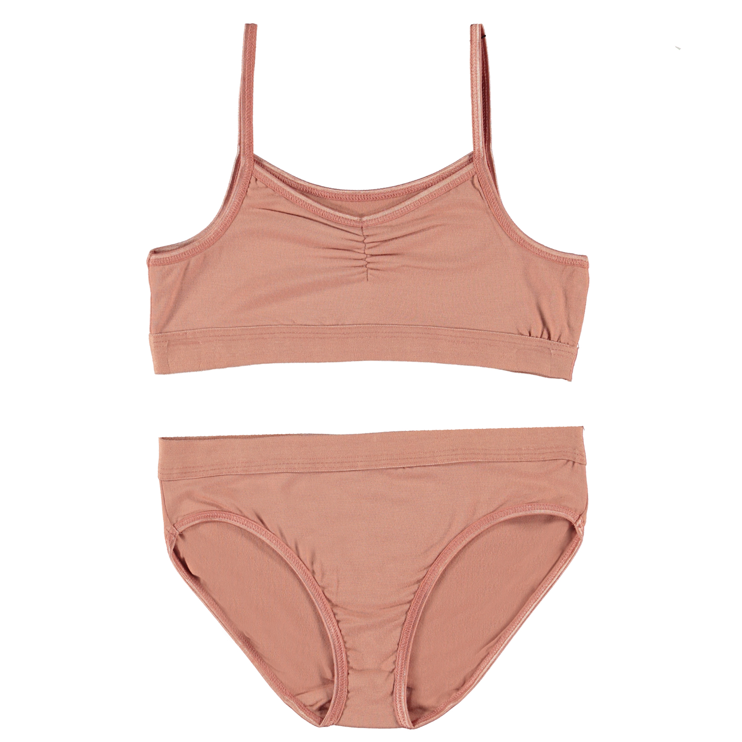 Jinny ist ein Unterwäsche-Set in Pink aus Viskose-Jersey. Sowohl Ober- als auch Unterhose haben einen breiten elastischen Rand, der für einen guten Sitz sorgt.