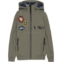 Grüne NASA Softshelljacke mit gestickten Patches aus wind- und wasserabweisendem Material, das einen Wassersäulendruck von bis zu 5.000 mm aufweist und plötzlichen Regenschauern standhalten kann. Gleichzeitig bietet die Jacke eine gute Atmungsaktivität von 5.000 g/m²/24h. Die Jacke verfügt über eine abnehmbare Kapuze und einen elastischen Taille, einen aufrechten Kragen und einen Reißverschluss mit Kinnschutz, der Reibung auf der Haut verhindert. Taschen an den Seiten, Windfänger in den Ärmeln und elastische Bündchen am Saum und am unteren Ärmelende. Geschlossene Nähte verhindern Undichtigkeiten. Reflektierende Details sorgen für erhöhte Sichtbarkeit im Verkehr. Die Jacke ist außerdem sehr leicht und flexibel, was sie ideal für Bewegung und vielfältige Aktivitäten macht. Es wurde eine wasser- und schmutzabweisende Beschichtung verwendet, ohne den Einsatz von Chemikalien wie PFOS, PFOA und Ähnlichem.