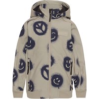 Cloudy ist eine sportliche und wasserdichte Softshelljacke in Beige mit Peace-Zeichen- und Smiley-Print. Cloudy hat eine abnehmbare Kapuze, einen Reißverschluss vorne, Taschen an der Seite und Windschutzleisten an den Ärmeln und einen elastischen Saum unten. Für die Übergangszeit bieten sich die Softshelljacken von Molo an, da das Außenmaterial winddicht, wasserdicht und atmungsaktiv ist. Das Produkt hat eine wasserabweisende PFC-freie Imprägnierung (z. B. enthält kein PFOS, PFOA und dergleichen). Wassersäulendruck: 8.000 mm. Atmungsaktivität: 5.000 g/m2/24h. Die Nähte sind nicht getaped.