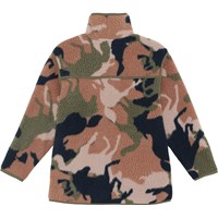Halina ist die neue Fleecejacke von Molo in Rosa mit Camouflage-Print. Die Jacke hat einen Reißverschluss und einen grünen Saum.