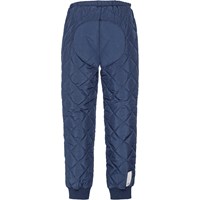 Gesteppte, dunkelblaue Thermohose aus 100 % recyceltem Polyester mit gerippten Kanten an den Beinen und verstellbarem Gummizug in der Taille. Thermokleidung ist ideal in der Übergangszeit, wenn die Winteroberbekleidung zu warm oder die Sommerjacke zu kalt ist.