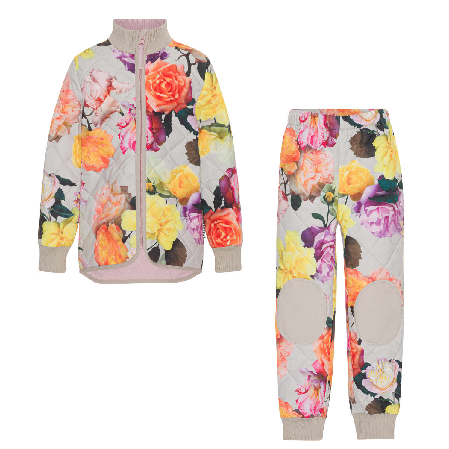 Hatton ist ein leicht isolierendes Thermo-Set in Grau mit großem Blumendruck. Die Jacke hat gerippte Kanten am Hals und an den Ärmelenden und den ikonischen reflektierenden Stern von Molo auf der Rückseite, der für Sichtbarkeit im Dunkeln sorgt. Die Hose hat einen Gummizug in der Taille, Rippbündchen an den Beinen und einen reflektierenden Stern auf der Rückseite eines Beins. Darüber hinaus hat die Hose farblich passende Verstärkungen an den Knien und am Abschluss, was die Hose für alle Spielarten besonders strapazierfähig macht.