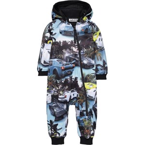 Hill ist ein Baby Softshell-Anzug mit Druck von schnellen Autos und Palmen. Hill ist geräumig und hat einen schrägen rosa Reißverschluss, eine abnehmbare Kapuze und Ripp am Hals, an der Kapuzenkante, am Ärmelende und unten. Der Anzug ist gut für die Übergangszeiten, da das Material winddicht, wasserdicht und atmungsaktiv ist. Dieses Produkt hat eine wasserabweisende PFC-freie Imprägnierung (enthält zB kein PFOS, PFOA und dergleichen). Wassersäulendruck: 8.000 mm. Atmungsaktivität: 3.000 g / m2 / 24