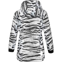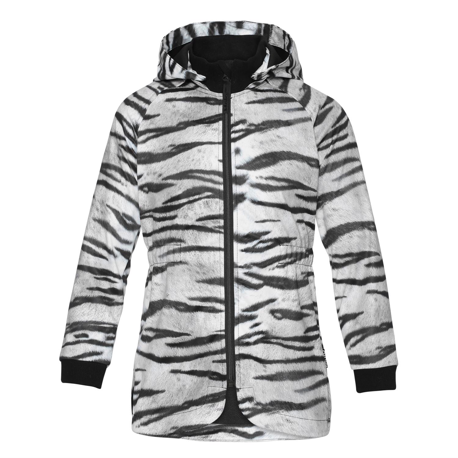 Hillary ist eine Parka-inspirierte Softshell-Jacke mit weißem und schwarzem Tigerdruck. Die Jacke hat eine elastische Taille, eine abnehmbare Kapuze, einen Reißverschluss vorne, eine elastische Kante am Ärmelende und Molos bekannten Sternreflektor hinten. Die Softshell-Jacke von Molo ist eine offensichtliche Wahl für die Übergangszeiten, da das Außenmaterial winddicht, wasserdicht und atmungsaktiv ist. Dieses Produkt hat eine wasserabweisende PFC-freie Imprägnierung (enthält zB kein PFOS, PFOA und dergleichen). Wassersäulendruck: 8.000 mm. Atmungsaktivität: 3.000 g / m2 / 24h.