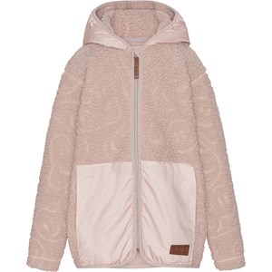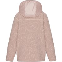 Rosa Fleecejacke mit Smiley-Motiv, Reißverschluss auf der Vorderseite, Kapuze und großen Taschen. Die Fleecejacke wirkt isolierend und kann daher alleine getragen werden oder als zusätzliche Schicht unter der Oberbekleidung an den kältesten Tagen.