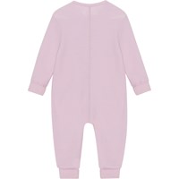 Lila Baby-Overall aus weicher Fleece-Qualität aus 100 % Merinowolle. Der Strampler eignet sich besonders gut als Oberbekleidung, wenn Spaziergänge im Kinderwagen oder Schlafen im Kinderbettchen in den kalten Herbst- und Wintermonaten anstehen. Der Overall kann auch drinnen getragen werden, wenn es auf dem Boden kalt ist. Er hat eine großzügige Passform mit Knöpfen entlang der Vorderseite und eng anliegenden Rippbündchen mit Aufschlag an den Bein- und Ärmelausschnitten.