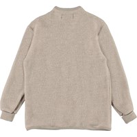 Umbat ist eine beige Merino Wolljacke mit Reißverschluss auf der Vorderseite. Die Jacke hat umgekrempelte Ärmel. Dieses