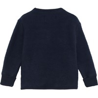 Umber ist eine dunkelblaue Babyjacke aus 100% Merino Wolle mit Knopfverschluss auf der Vorderseite. Die Jacke hat umgekrempelte Ärmel. Dieses