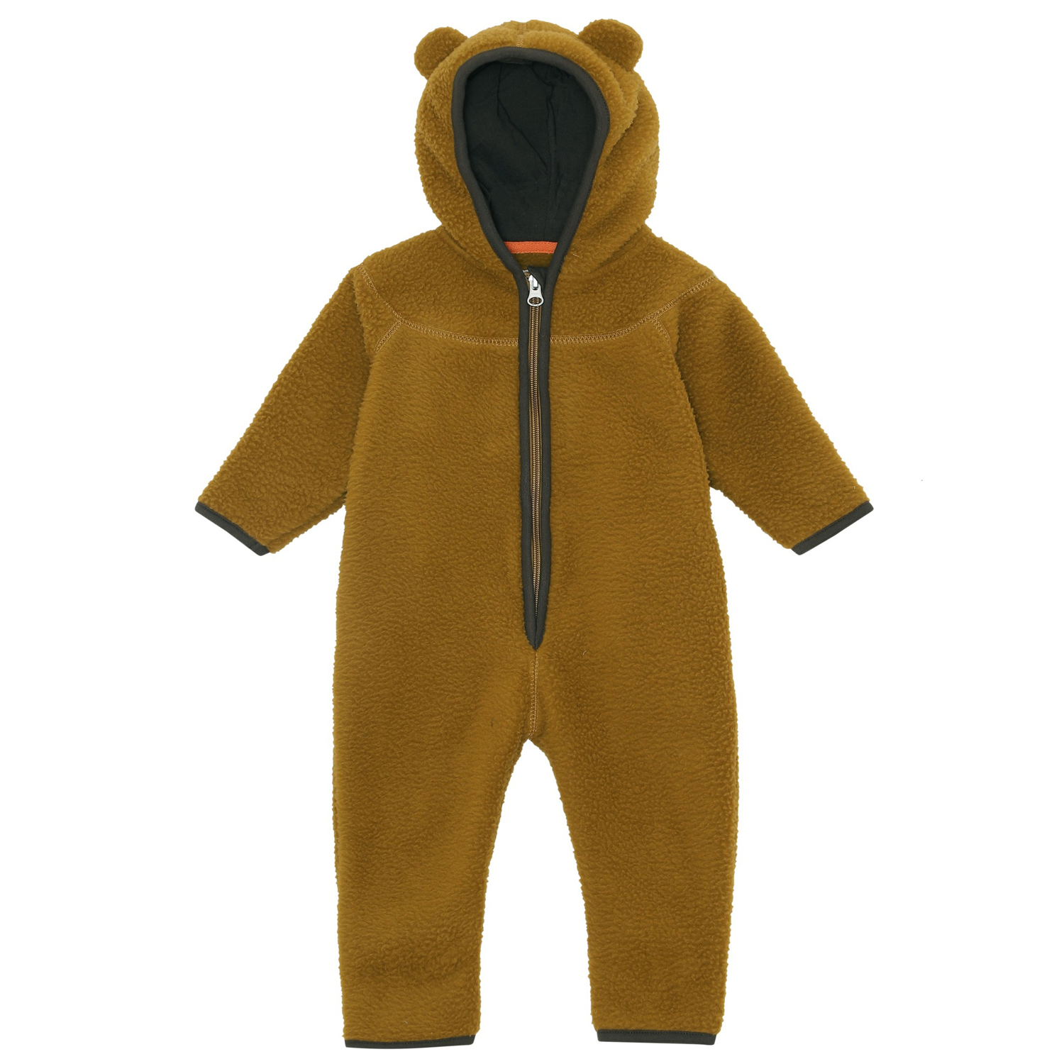 Umeko ist ein Baby-Fleeceanzug in Braun. Der Anzug hat einen Reißverschluss und eine Kapuze mit angenähten kleinen Ohren. Die Fleeceanzüge von Molo wärmen und haben eine isolierende Wirkung. Verwenden Sie es allein oder an sehr kalten Tagen als zusätzliche Schicht unter dem Fliegeranzug. Dieser Style ist von Größe 56-74 mit Füßen. Ohne Füße von Größe 80-92.