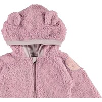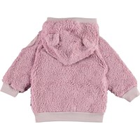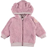 Ummi ist eine weiche Baby-Fleecejacke in Pink. Ummi hat eine Kapuze mit aufgesetzten kleinen Ohren, sowie Rippenbündchen am Kapuzenkante, Ärmelabschluss und Saum. Verwenden Sie ihn als Zwischenpullover oder einfach als Jacke, da er sowohl wärmend als auch isolierend wirkt.