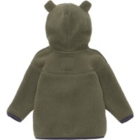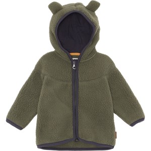 Ummi ist eine weiche Baby-Fleecejacke in Grün. Ummi hat eine Kapuze mit angesetzten kleinen Ohren, sowie Rippbündchen an Kapuzenrand, Ärmelabschluss und Saum. Verwenden Sie ihn als Zwischenpullover oder einfach als Jacke, da er sowohl wärmend als auch isolierend wirkt.