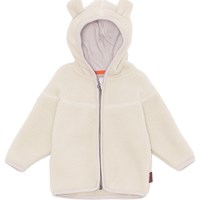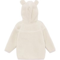 Ummi ist eine weiche Baby-Fleecejacke in Weiß. Ummi hat eine Kapuze mit angesetzten kleinen Ohren, sowie Rippbündchen an Kapuzenrand, Ärmelabschluss und Saum. Verwenden Sie ihn als Zwischenpullover oder einfach als Jacke, da er sowohl wärmend als auch isolierend wirkt.