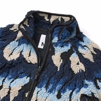 Weiche Fleecejacke aus recyceltem Polyester mit passenden gerippten Abschlüssen und gefüttert mit weicher Baumwolle. Die Jacke hat einen hohen Kragen, einen Frontreißverschluss, zwei Vordertaschen mit Reißverschlüssen, eine reguläre Passform und funktioniert sowohl alleine als auch als zusätzliche Schicht unter einer Jacke. Das Gewebe der Jacke sieht aus wie Flammen in Blau- und Beigetönen.