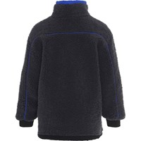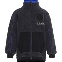 Uno ist eine graue Fleecejacke mit blauen Details und einer Känguru-Tasche auf der Vorderseite. Die Jacke hat eine Reißverschlussöffnung sowie zwei verschiedene Patches auf der linken Brust. Die Fleecejacke kann an sehr kalten Tagen entweder alleine oder als zusätzliche Schicht unter einer anderen Jacke verwendet werden.