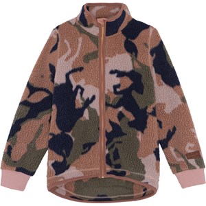 Urban ist eine Rosafarbene Fleecejacke mit Camouflage-Print, das bei genauem Hinsehen wie Pferde aussieht. Die Jacke hat einen hohen Kragen, einen Reißverschluss vorne und einen gerippten Saum am Ärmelende. Die Fleecejacke kann entweder alleine oder an sehr kalten Tagen als zusätzliche Schicht unter einer anderen Jacke verwendet werden.