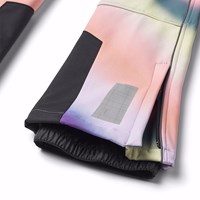 Wasserabweisende Softshell-Hose aus recyceltem Polyester mit einem mehrfarbigen, gewebten Graffiti-Print. Die Hose hat ein Innenfutter aus Fleece, einen Reißverschluss und einen Knopfverschluss in der Taille, der mit einem inneren Gummiband verstellbar ist. Die Hose hat verstellbare Beinöffnungen mit Schneefang und zusätzliche Verstärkungen zwischen den Beinen. Die Hose hat eine schmale Passform mit leichtem Schlag in den Beinen, sowie reflektierende Streifen entlang der Seiten und ein großes Reflektor-Detail auf der Rückseite, das für eine bessere Sichtbarkeit im Straßenverkehr sorgt.