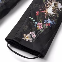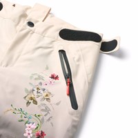 Wind- und wasserdichte Skihose aus recyceltem Polyester mit einem Druck bunter Blumen, der zum hellen und dunklen Farbverlauf im Hintergrund passt. Die Skihose hat einen Druckknopf- und Reißverschluss, externe verstellbare Klettverschlüsse, Gürtelschlaufen für Molos-Träger (zusätzliches Zubehör), verstellbare Beinöffnungen mit Schneegamaschen und zusätzliche Verstärkung zwischen den Beinen. Die Skihose verfügt über wasserdichte Taschen und einen reflektierenden Text auf der Rückseite, um die Sichtbarkeit im Verkehr zu erhöhen. Darüber hinaus sind die Skihosen in exponierten Bereichen mit Fleece gefüttert und mit 3M™ Thinsulate™ gepolstert.