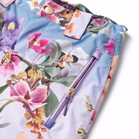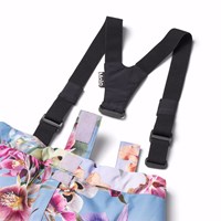 Wind- und wasserdichte Hose aus recyceltem Polyester mit einem Druck von schönen Blumen in frischen Farben auf einem blauen und lila Hintergrund. Die Hose hat einen Knopf- und Reißverschluss, ein verstellbares internes Gummiband, Gürtelschlaufen für Molos Hosenträger (zusätzliches Zubehör) und eine verstellbare Beinöffnung mit Schneegamaschen und zusätzlicher Verstärkung zwischen den Beinen. Die Hose hat Taschen und einen großen Reflektor auf der Rückseite, um die Sichtbarkeit im Verkehr zu erhöhen. Zusätzlich sind die Hosen in exponierten Bereichen mit Fleece gefüttert und mit 3M™ Thinsulate™ gefüttert, um eine größere Bewegungsfreiheit für das Kind zu gewährleisten.