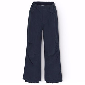 Wind- und wasserdichte Schneehosen in Dunkelblau aus Nylon. Die Schneehosen haben einen elastischen Bund und ein verstellbares internes Gummiband, Gürtelschlaufen für Molos Hosenträger (zusätzliches Zubehör) und Beinöffnungen mit Schneegamaschen. Außerdem befindet sich ein großer Reflektor auf der Rückseite, um die Sichtbarkeit im Verkehr zu erhöhen.