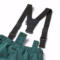 Wind- und wasserdichte Schneehosen in dunkelgrün aus Nylon. Die Schneehosen haben einen elastischen Bund und ein verstellbares internes Gummiband, Gürtelschlaufen für Molos Hosenträger (zusätzliches Zubehör) und Beinöffnungen mit Schneegamaschen. Außerdem befindet sich ein großer Reflektor auf der Rückseite, um die Sichtbarkeit im Verkehr zu erhöhen.
