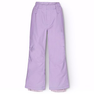 Wind- und wasserdichte Schneehosen in Lila aus Nylon. Die Schneehosen haben einen elastischen Bund und ein verstellbares internes Gummiband, Gürtelschlaufen für Molos Hosenträger (zusätzliches Zubehör) und Beinöffnungen mit Schneegamaschen. Außerdem befindet sich ein großer Reflektor auf der Rückseite, um die Sichtbarkeit im Verkehr zu erhöhen.