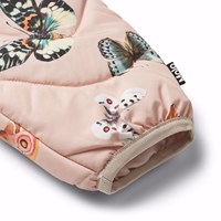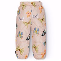 Wasserabweisende rosa Thermohosen für Babys und Kleinkinder mit Besatz. Die Hosen haben eine großzügige Passform, einen elastischen Bund mit verstellbarem Gummiband und einen eng anliegenden Beinabschluss. Die Hosen haben ein Allover-Print von Schmetterlingen in verschiedenen Farben und Mustern. Hose und Fütterung bestehen aus recyceltem Polyester. Die wasserabweisende Oberfläche ist frei von PFOS und PFOA. Kombinieren Sie sie mit einer passenden Jacke und erhalten Sie ein warmes und weiches Thermoset.
