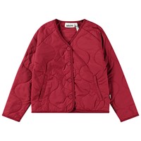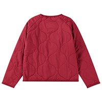 Dunkelrote Steppjacke mit langen Raglanärmeln. Die Jacke wird mit Knöpfen vorne geschlossen und hat praktische Taschen an den Seiten. Sie hat eine normale Passform.