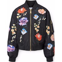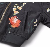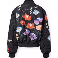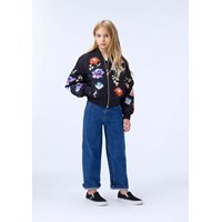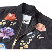 Schwarze Bomberjacke mit farbenfrohem Blumendruck aus recyceltem Polyester. Die Bomberjacke hat eine reguläre Passform, Vordertaschen, eine Reißverschlusstasche am Ärmel, praktischer Reißverschluss mit Windschutzklappe und gerippte Kanten am Hals, an den Bündchen und am Saum. Darüber hinaus hat die Jacke eine Füllung aus recyceltem Polyester, die für eine angenehme Weichheit und optimale Wärmedämmung sorgt, und die wasserabweisende Oberfläche ist frei von PFOS und PFOA.