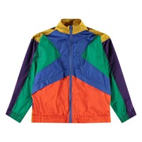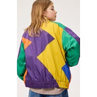 Bunte Jacke mit stilvollen Schnitten und Inspiration aus den 80er Jahren. Die Jacke hat eine lockere Passform, einen Stehkragen, einen Reißverschluss vorne, Vordertaschen und elastische Bündchen an den Ärmeln und um die Taille.