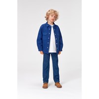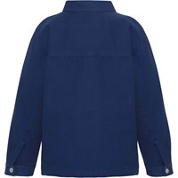 Henleys ist ein marineblaues Baumwoll-Canvas-Hemd. Henleys hat Brusttaschen, Seitentaschen und silberne Knöpfe.