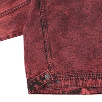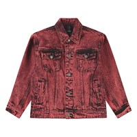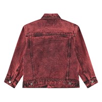 Rote Jeansjacke im gewaschenen Baumwoll-Look. Die Jacke hat eine lockere Passform, einen Hemdkragen, einen Knopfverschluss vorne, Seitentaschen, Brusttaschen und verstellbare Druckknöpfe hinten. Größen 92-134 haben Druckknöpfe, um es Kindern einfacher zu machen, die Jacke selbst zu schließen. Größen 140-176 haben einen regulären Knopfverschluss.