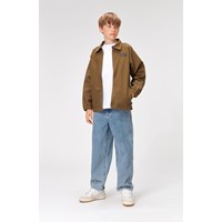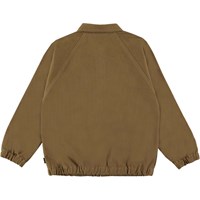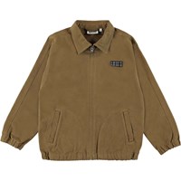 Hozz ist eine hellbraune Twilljacke aus 100 % Baumwolle. Hozz hat einen Reißverschluss, Taschen und Gummizüge an den Handgelenken und am Saum.