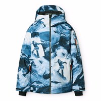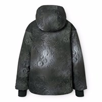 Wind- und wasserdichte Winterjacke aus recyceltem Polyester mit einem reflektierenden Druck der Strukturen des Mondes, der aufleuchtet, wenn das Licht darauf fällt. Die Jacke hat eine gefütterte Kapuze, wasserdichte Reißverschlüsse, eine Tasche am Ärmel für einen Skipass und eine Innentasche für zusätzlichen Stauraum. Die Jacke hat einen Windschutz um die Taille, Klettverschlüsse an den Handgelenken und Ärmelöffnungen mit Daumenlöchern, die Schnee, Wind und Wasser fernhalten. Zusätzlich ist die Jacke mit Fleece gefüttert, mit 3M™ Thinsulate™ gepolstert und hat einen reflektierenden Text zur Erhöhung der Sichtbarkeit im Verkehr.