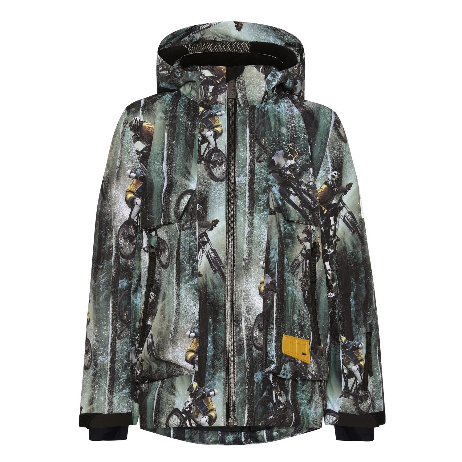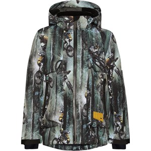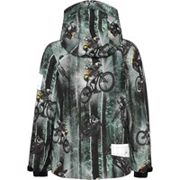 Alpine ist eine funktionelle und wasserdichte Skijacke in Grüntönen mit Mountainbike-Print. Die Jacke hat eine abnehmbare Kapuze, einen Reißverschluss vorne, große geräumige Taschen an der Seite sowie ein verstellbares Armloch mit enganliegendem Windschutz mit Loch für den Daumen und einem Reflexstreifen hinten. Futter und Innenmaterial der Jacke sind recycelt und bestehen aus wiederverwertbarem Polyester. Alpine ist winddicht, wasserdicht und atmungsaktiv und hat verklebte Nähte. Dieses Produkt hat eine wasserabweisende PFC-freie Imprägnierung (zB enthält kein PFOS, PFOA und dergleichen). Der Wassersäulendruck und die Atmungsaktivität wurden weiter verbessert und betragen jetzt bis zu 15.000 mm Wassersäulendruck und eine Atmungsaktivität von 15.000 g/m2/24h.