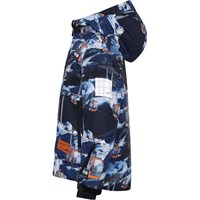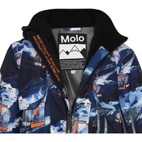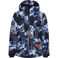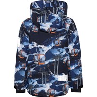 Alpine ist eine funktionelle und wasserdichte Skijacke in Blau mit Aufdruck von Skiliften. Die Jacke hat eine abnehmbare Kapuze, einen Reißverschluss vorne, große geräumige Taschen an der Seite sowie ein verstellbares Armloch mit enganliegendem Windschutz mit Loch für den Daumen und einem Reflexstreifen hinten. Futter und Innenmaterial der Jacke sind recycelt und bestehen aus wiederverwertbarem Polyester. Alpine ist winddicht, wasserdicht und atmungsaktiv und hat verklebte Nähte. Dieses Produkt hat eine wasserabweisende PFC-freie Imprägnierung (zB enthält kein PFOS, PFOA und dergleichen). Der Wassersäulendruck und die Atmungsaktivität wurden weiter verbessert und betragen jetzt bis zu 15.000 mm Wassersäulendruck und eine Atmungsaktivität von 15.000 g/m2/24h.