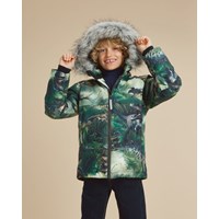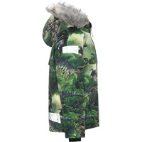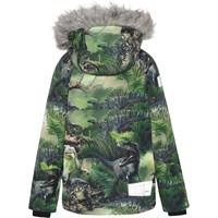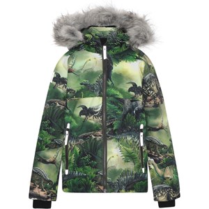 Castor ist eine gefütterte und wasserdichte Winterjacke in Grün mit Dinosaurier-Print.Castor ist aufgrund seiner unglaublich hohen Atmungsaktivität und Isolierung sowohl für die extrem kalten als auch für gewöhnliche Winter perfekt. Die hohe Atmungsaktivität hilft, die Körpertemperatur zu regulieren und sorgt dafür, dass Ihrem Kind nicht zu kalt oder zu heiß wird. An wärmeren Wintertagen kann das Kind daher mit dünnen Schichten darunter auskommen und an Tagen mit heftigen zweistelligen Minusgraden können Sie mit einer zusätzlichen Schicht darunter ergänzen. Wenn Sie ein stillsitzendes Kind haben, ist Castor auch eine offensichtliche Wahl. Die Jacke hat einen abnehmbaren Pelzkragen aus Kunstpelz an der Kapuze, einen verdeckten Reißverschluss mit Angriff, versteckte Taschen, sichtbare Reflektoren an der Seite des Ärmels und auf der Rückseite. Die Jacke besteht aus einem winddichten, wasserdichten und atmungsaktiven Material. Das Außenmaterial besteht zu 45% aus recyceltem Polyester, das 3M™ Thinsulate™ Futter zu 78% aus recyceltem Polyester und die Innenseite zu 100 % aus recyceltem Polyester. Dieses Produkt hat eine wasserabweisende PFC-freie Imprägnierung (zB enthält kein PFOS, PFOA und dergleichen). Der Wassersäulendruck und die Atmungsaktivität wurden weiter verbessert und liegen nun bei bis zu 15.000 mm Wassersäulendruck und einer Atmungsaktivität von 15.000 g/m2/24h.