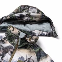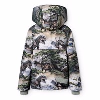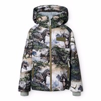 Wind- und wasserdichte Winterjacke aus recyceltem Polyester mit Dinosaurier-Print. Die Jacke hat eine abnehmbare gefütterte Kapuze, praktischen Reißverschluss, Reißverschlusstaschen mit Fleece, gerippte Bündchen und elastischen Saum, um effektiv gegen den Wind zu helfen. Auf der Rückseite befindet sich ein großer Reflektor, der die Sichtbarkeit im Verkehr erhöht. Darüber hinaus ist die Jacke mit Fleece gefüttert und mit 3M™ Thinsulate™ gepolstert.