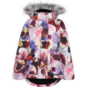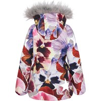 Cathy Fur ist eine wasserdichte Winterjacke mit Aufdruck von großen Blumen in warmen Farben. Die Jacke hat eine abnehmbare Kapuze mit Kunstfellkante (die auch abgenommen werden kann), Reißverschluss vorne, geräumige Taschen, verstellbarer, elastischer Bund und Molos bekannten Sternreflektor auf der Rückseite. Die Jacke besteht aus einem winddichten, wasserdichten und atmungsaktiven Material, während Futter und Innenmaterial recycelt und aus wiederverwertenbarem Polyester bestehen. Dieses Produkt hat eine wasserabweisende PFC-freie Imprägnierung (zB enthält kein PFOS, PFOA und dergleichen). Der Wassersäulendruck und die Atmungsaktivität wurden weiter verbessert und betragen jetzt bis zu 15.000 mm Wassersäulendruck und eine Atmungsaktivität von 15.000 g/m2/24h.