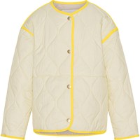 Heisley ist eine hellgelbe Steppjacke mit gelben Kontrastkanten. Die Weste hat einen Knopfverschluss auf der Vorderseite.