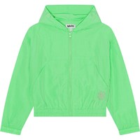 Neongrüne Sportjacke mit einem kleinen gestickten Kleeblatt auf der Vorderseite und der Kapuze. Die Jacke hat lange Ärmel mit Gummizug an den Handgelenken und an der Hüfte. Die Jacke hat Vordertaschen, einen Reißverschluss und eine lockere Passform mit viel Bewegungsfreiheit. Kombinieren Sie die Jacke mit passenden Shorts und erhalten Sie ein komplettes sportliches Set.