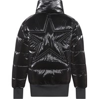 Halle ist eine schwarze Bomberjacke mit glänzender Außenseite und elastischen Rippen an den Ärmelenden und an der Unterseite der Jacke. Die Jacke ist mit Perlenwattierung gefüttert, die für zusätzliche Weichheit sorgt, die Wärme gut hält und ein daunenartiges Gefühl vermittelt. Futter und Innenstoff sind zu 100 % recycelt und aus wiederverwertbaren Plastikflaschen hergestellt. Das Obermaterial hat eine wasserabweisende PFC-freie Imprägnierung (zB enthält kein PFOS, PFOA und dergleichen).