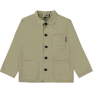 Halley ist eine Baumwolljacke mit Kragen und Außentaschen auf der Vorderseite. Die Jacke hat einen Knopfverschluss auf der Vorderseite.