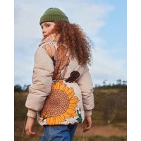 Rosa wasserabweisende Jacke mit Reißverschluss entlang der Vorderseite, Taschen an den Seiten, elastischen Ärmelausschnitten, hohem Kragen mit versteckter, abnehmbarer Kapuze und Taillengummi, um die Silhouette und Passform der Jacke anzupassen. Auf der Rückseite der Jacke befindet sich ein dekorativer Retro-Blumendruck. Es wurde eine wasser- und schmutzabweisende Beschichtung verwendet, ohne den Einsatz von Chemikalien wie PFOS, PFOA und Ähnlichem.