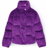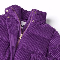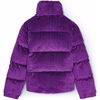 Lila Cordjacke mit Stehkragen und Reißverschluss mit Sturmklappe, die Schnee und Wind abhält. Die Jacke hat Taschen vorne und elastische Ärmelöffnungen, die den Wind abhalten und die Wärme besser speichern. Die Jacke ist mit Pearl Padding gefüttert, einer recycelten Polyesterfüllung, die für gleichmäßige Weichheit, optimale Wärme und einfache Pflege beim Waschen sorgt.
