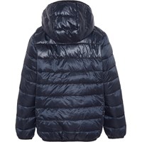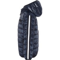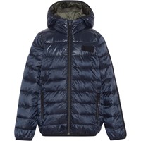 Hao ist eine blaue Jacke mit schwarzem Reißverschluss und Taschen mit Reißverschluss. Die Jacke hat eine abnehmbare Kapuze und ist mit Wattierung aus recycelten pearl padding gefüttert, die für zusätzliche Weichheit sorgt, die Wärme gut hält und ein daunenähnliches Gefühl vermittelt. Das Obermaterial ist wasserabweisend PFC-frei imprägniert (zB ohne PFOS, PFOA o.ä.).