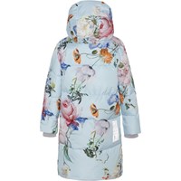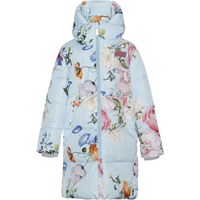 Harper ist ein schöner warmer und langer Mantel in Hellblau mit Blumendruck. Die Jacke hat eine Kapuze, Taschen mit Reißverschluss auf der Vorderseite und einen Reflektor auf der Rückseite. Harper ist mit technischen Daunen gefüttert, genannt pearl padding, die für zusätzliche Weichheit sorgt, die Wärme gut hält und ein daunenähnliches Gefühl vermittelt. Dieses Produkt ist wasserabweisend PFC-freiImprägnierung (zB enthält kein PFOS, PFOA und dergleichen). Wassersäulendruck: 5.000 mm. Atmungsaktivität: 5.000 g/m2/24 Std.