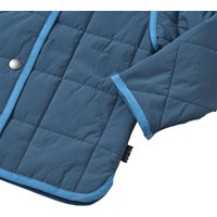 Blaue wasserabweisende Thermojacke aus recyceltem Nylon mit Steppmuster. Die Jacke hat eine normale Passform, einen Stehkragen, Druckknöpfe vorne und passende Einfassungen, die einen schönen Abschluss bieten.