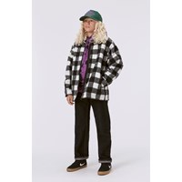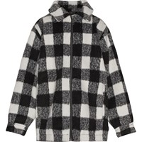 Kariertes Overshirt in Weiß und Schwarz. Die Jacke hat einen Reißverschluss auf der Vorderseite und Taschen an der Seite. Die Jacke ist aus einer Wollmischung und eignet sich daher in der kalten Jahreszeit perfekt für drinnen, kann aber an milden Tagen auch draußen getragen werden.